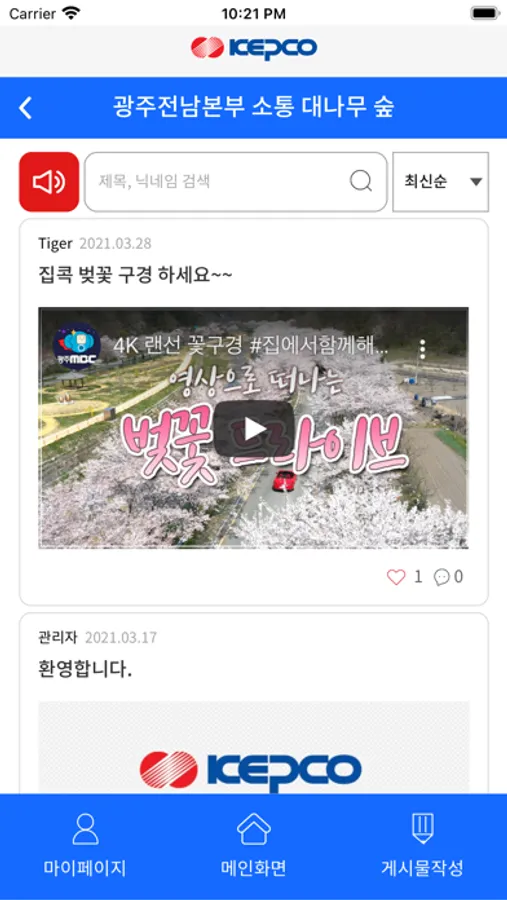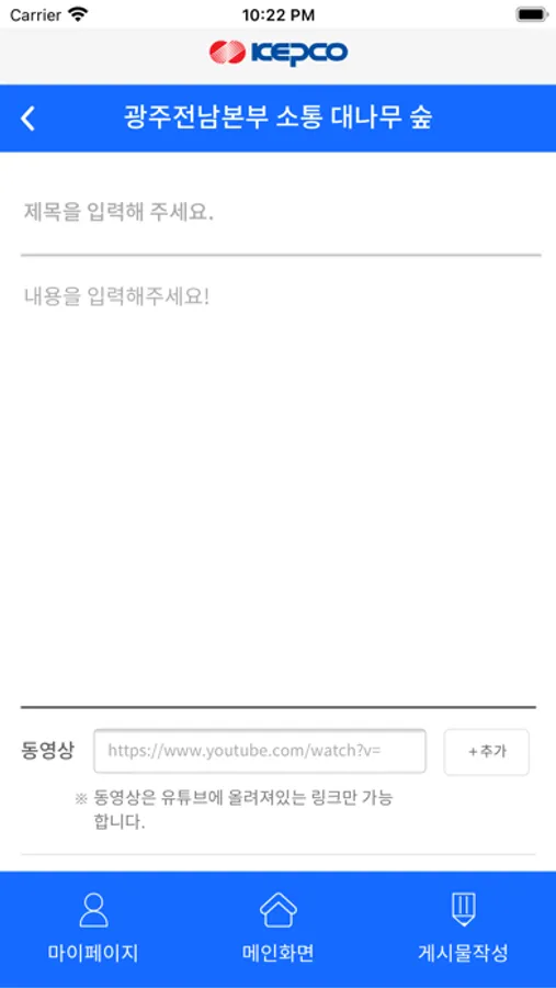 본 어플리케이션은 한전 광주전남본부 발전을 위한 직원 상호간 정보공유 및 건전한 소통을 목적으로 하는 SNS 앱