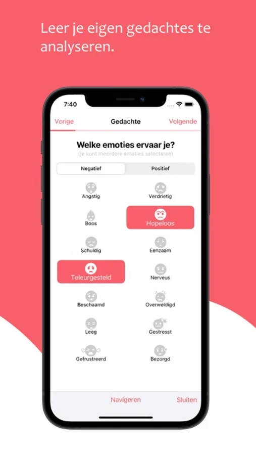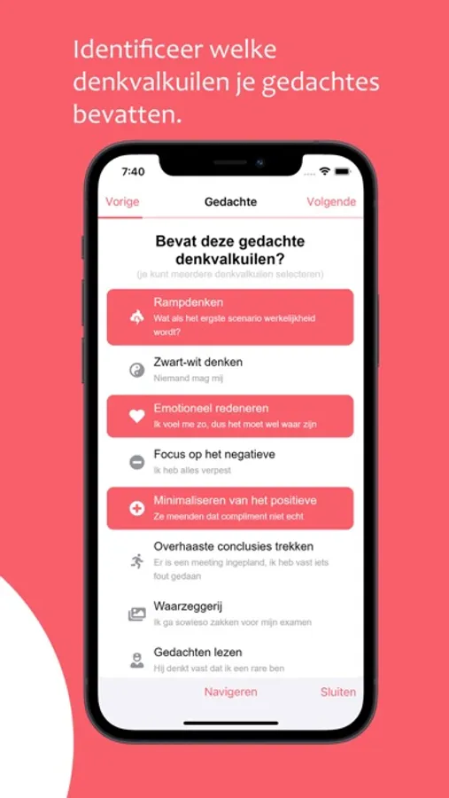 GedachteGrip helpt je op de momenten dat je opvlamt in emoties om te kijken welke negatieve gedachtes er door je hoofd gaan. We helpen je om te kijken welke gedachte het meest verantwoordelijk is voor je gevoel. Deze gedachte gaan we vervolgens analyseren. We kijken of je misschien denkvalkuilen maakt en of de gedachte bijvoorbeeld wel kloppend is. Door deze analyse vaak te doen kun je je denkpatronen doorbreken en ga ja je in bepaalde situaties ook weer wat beter voelen.