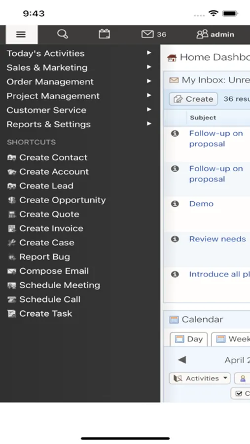 In addition, unlike the previous iPhone App, 1CRM Client works with any edition of 1CRM – Startup, Startup+, Professional and Enterprise (preferably software version 8.6.12 or later to gain all the features available). And it now allows you to use absolutely all the features of 1CRM – even including Administration.