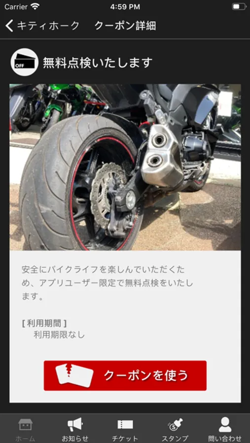 クーポン情報が更新された場合は、プッシュ通知にて更新のお知らせを行うことがあります。