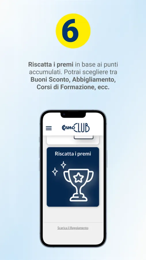 Potrete utilizzare i punti accumulati per riscattare tantissimi fantastici premi; buoni sconto, abbigliamento brandizzato, materiale marketing, corsi di formazione utili alla vostra crescita e molto altro ancora!