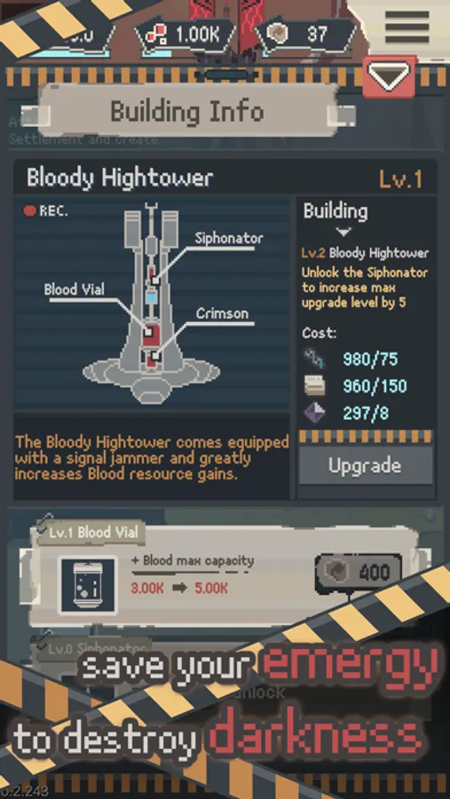 Install Crimson Cores and Siphonators, or build Blood Vials to upgrade your Blood Pool!