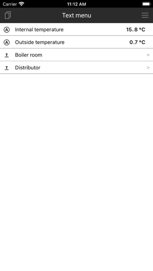 The app uses a LCD menu definition which displays values in line menu items as they are presented on the LCD. It is an alternative for more complex graphical reprezentation of the process which is also possible.
