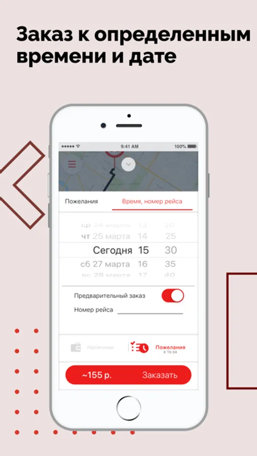 Закажи такси к конкретному времени и дате, и мы подадим машину тогда, когда это будет тебе необходимо.
