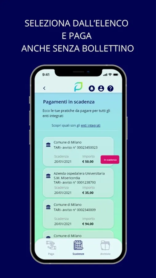 - inviare pagamenti spontanei ad oltre 800 enti integrati