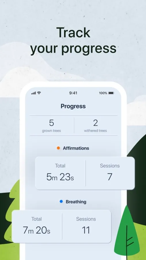 Make affirmations and breathing gymnastics your daily rituals and you will be able to plant seeds of various trees. With each day of listening and repeating affirmations with breathing exercises trees will grow and flourish together with you.