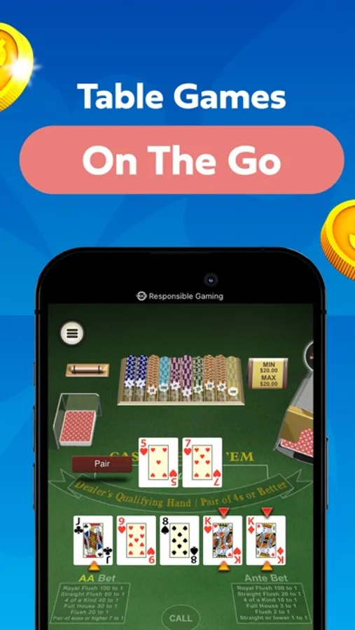 Play the ever-growing collection of slots and table games, featuring Live Dealer Table and Slot games, available on casino.