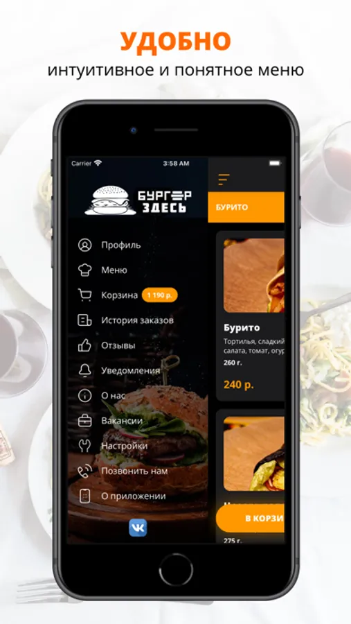 Пробуй вкусные бургеры! Установи наше приложение и заказывай еду и закуски с доставкой на дом!
