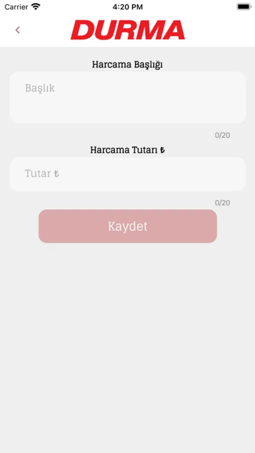 Durma Seyahat Masraf Uygulaması