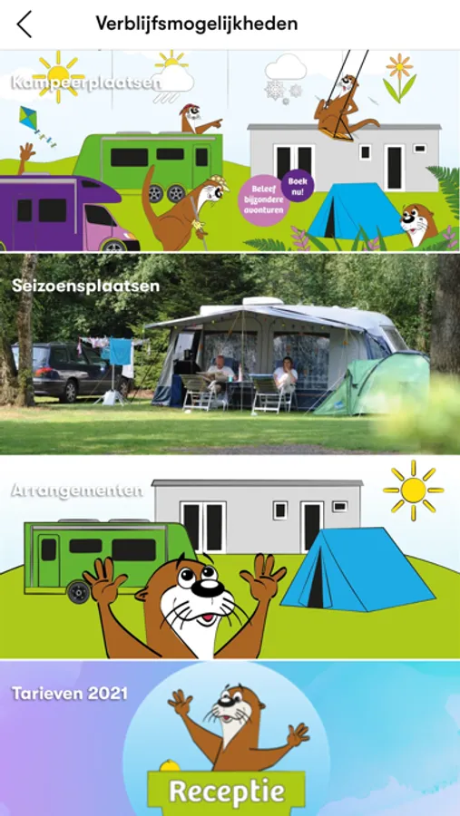 Informatie over onze overnachtingsmogelijkheden waaronder kamperen, accommodaties en seizoensplaatsen.