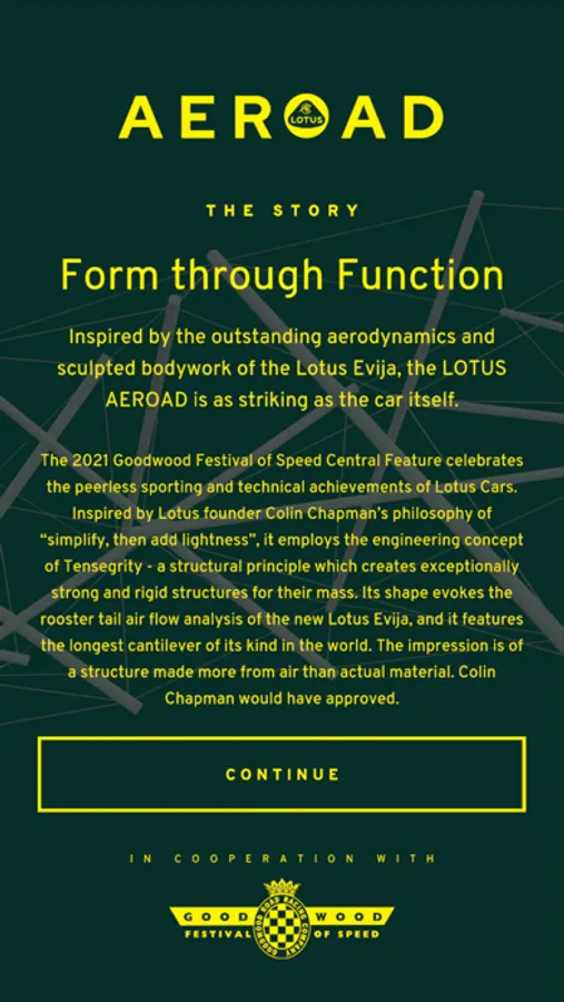 Lotus is first, last and always for the drivers. And the same goes for this app, designed to help you fully experience the amazing Lotus ‘Aeroad’ Central Feature at this year’s Goodwood Festival of Speed. Using the latest AR technology, users can watch four iconic Lotus cars speed through the air on an augmented racetrack. The app also features an 'at home' mode for those fans unable to attend the event giving them the opportunity to launch a virtual version of the sculpture, plus the racetrack and cars.