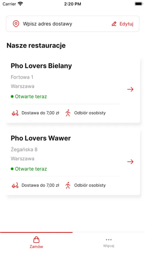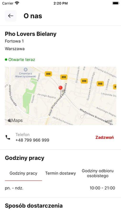 Oprócz zamawiania online aplikacja pozwala sprawdzić: