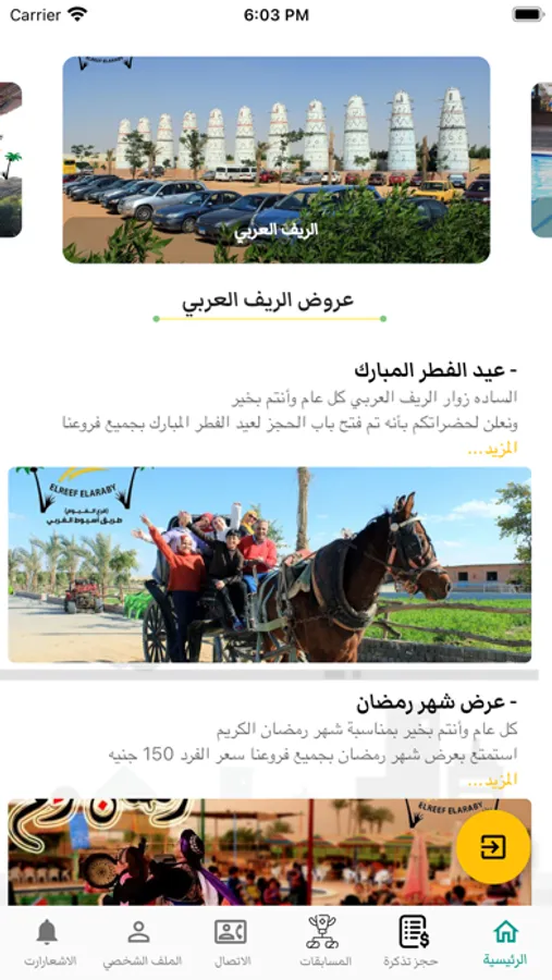 هو عبارة عن تطبيق لحجز التذاكر و العروض للعملاء باسعار جيده والدفع من خلال التطبيق ودخول القريه من خلال التطبيق ويحتوي علي صور تذكريه لعملاء الريف العربي المتميزين وعرضه في