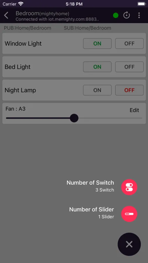 → In the room, You can select the number of Switches and Sliders.