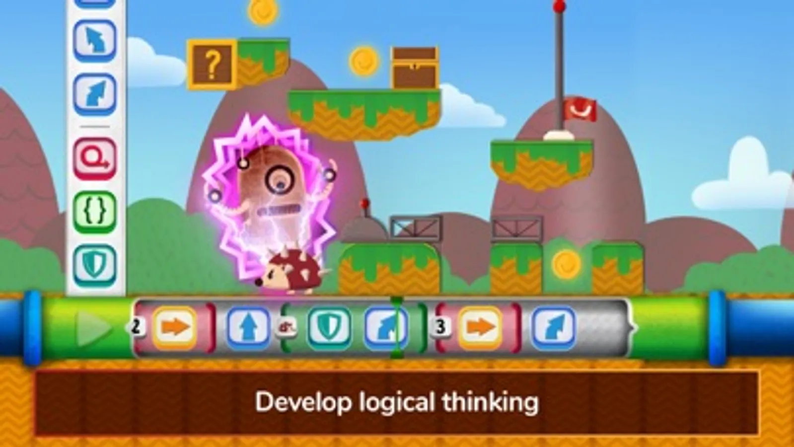 • Dozens of levels distributed across four worlds working on different programming concepts.