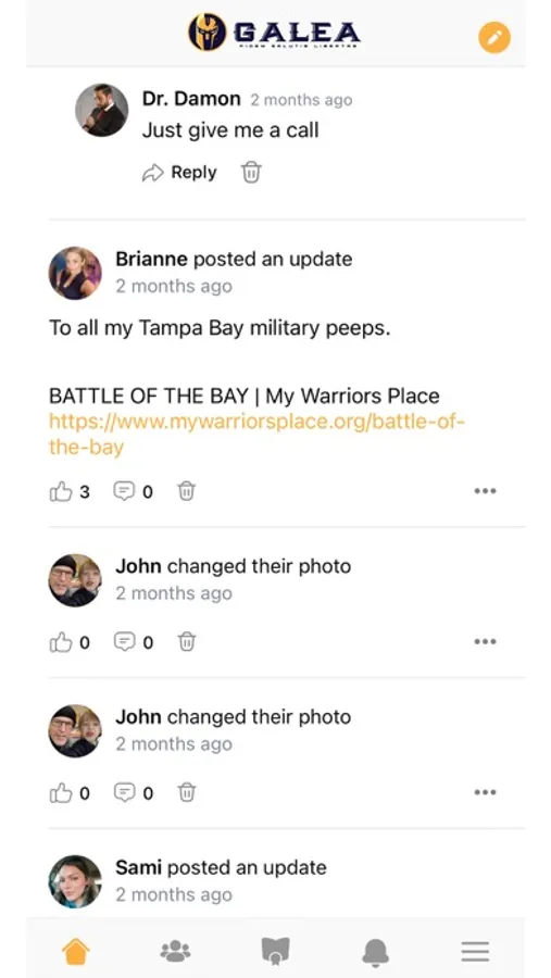 Galea App is a free social networking Web platform that promotes and facilitates interaction between active service members and veterans. Galea App empowers, inspires, and equips veterans and active service members to be resilient and to live a life of wellness. With the ability to access curriculums, inspiring podcasts, physical health through chat or videos, and more.