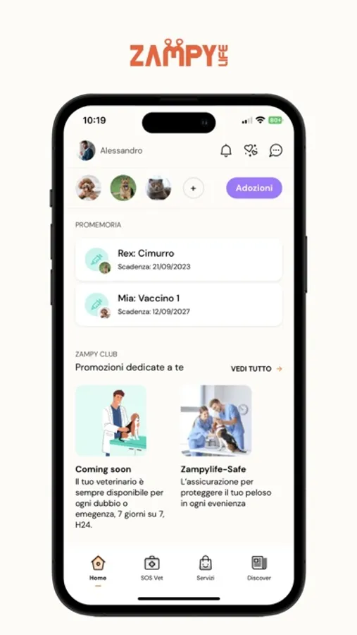 ZAMPYlife permette di creare una tessera sanitaria sull’app e condividerla con il veterinario con un semplice “tap”. Ti avvisa con un “alert” quando è il momento di effettuare una vaccinazione.