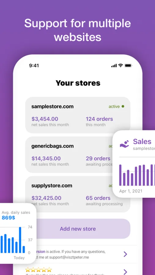 Moni lets you view your WooCommerce store's sales & orders in widgets.