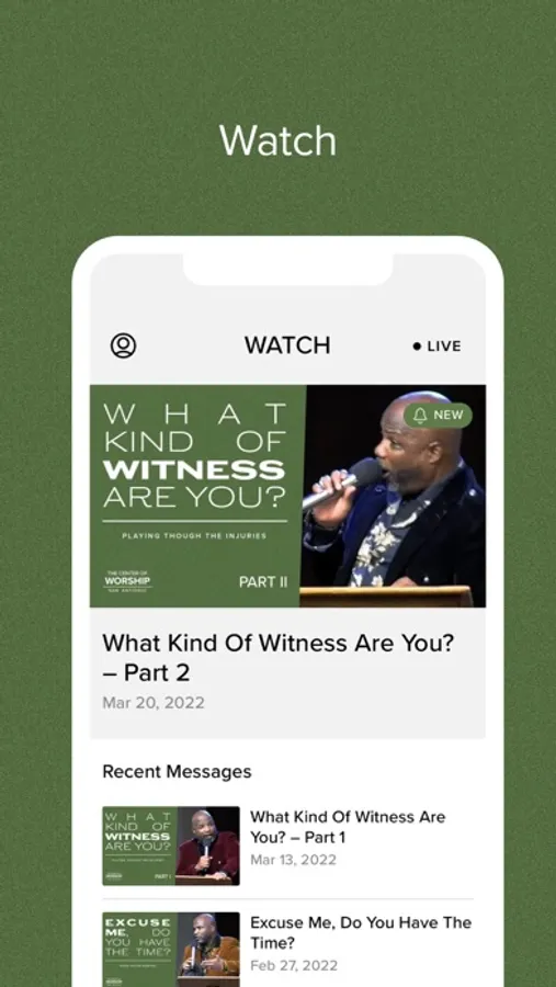 Watch live and past sermons, stay connected with all the things happening, and pray for each other right in the Center of Worship App.