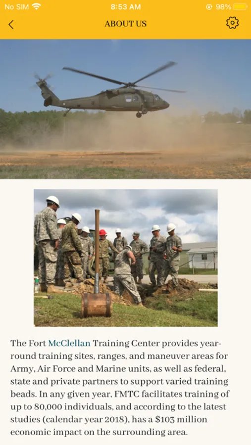 The Fort McClellan Training Center provides year-round training sites, ranges, and maneuver areas for Army, Air Force and Marine units, as well as federal, state and private partners to support varied training events. This app connects you to the McClellan Training Center where you can learn more about FMTC and what is available to you!