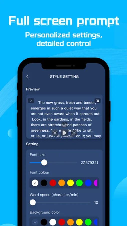 It contains multiple convenient features like scrolling speed adjustment, font size adjustment, font color adjustment, and background color change for better recognition.