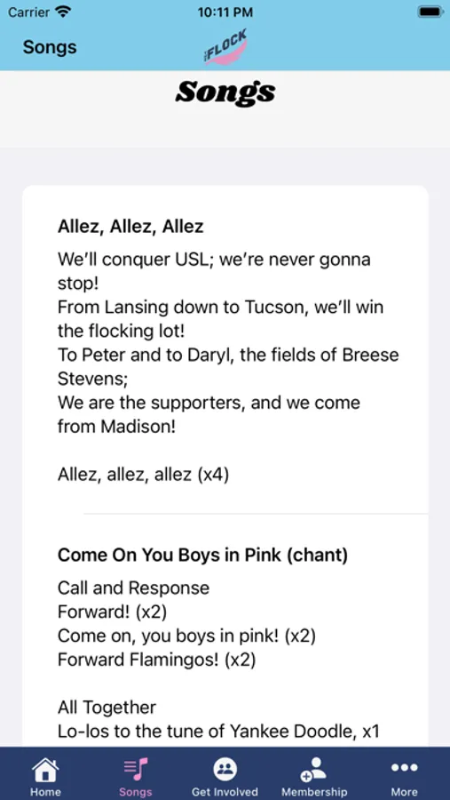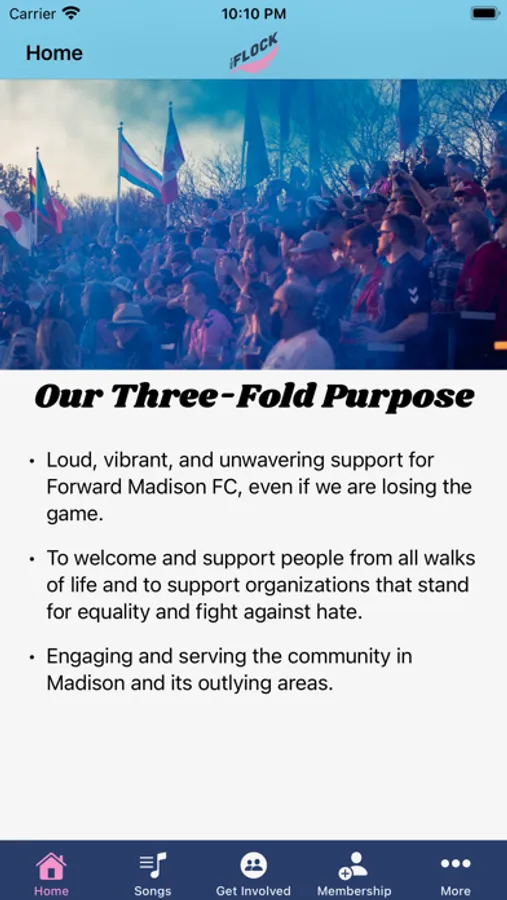 It's your favorite supporters' group, in an app! Get all the latest Flock news, events, songs, and more here in The Flock's official app.