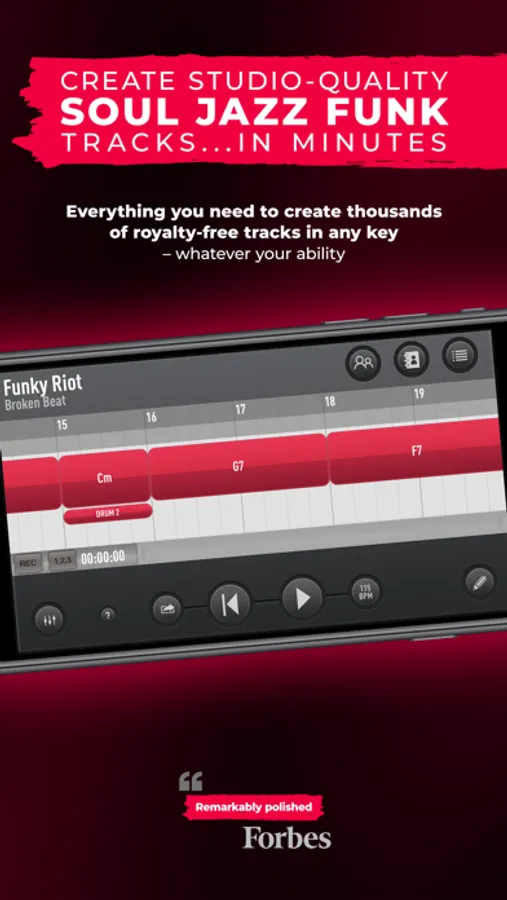 With over 15,000 precision-cut, chord-based loops included in the download, the app instantly converts the chords you select into great-sounding, royalty-free audio - wherever you are and whatever your ability.