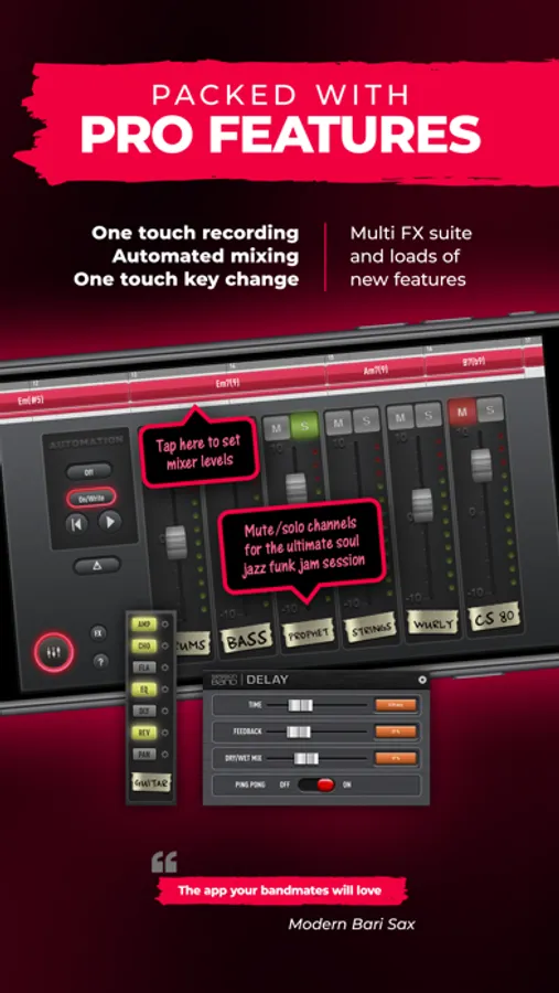 Create studio-quality soul, jazz and funk tracks to your own chords in minutes with the latest edition of the award-winning SessionBand app – the world’s only chord-based loop app.