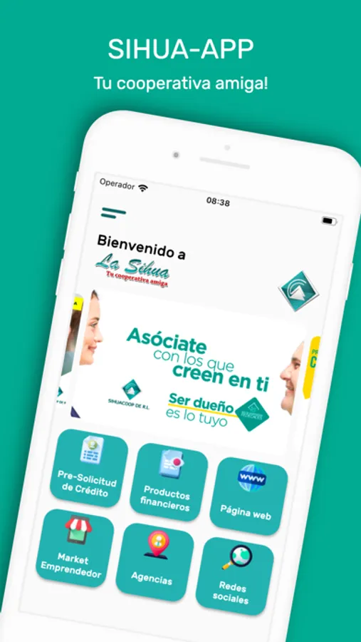 SIHUA-APP de Sihuacoop de R.L. una app con la que podrás realizar todas nuestras operaciones de transacciones y consultas, ademas de pagos de servicios de una forma mas rápida y desde la comodidad donde te encuentres, adicionalmente podrás ofrecer tus productos como emprendedor en el mercado.