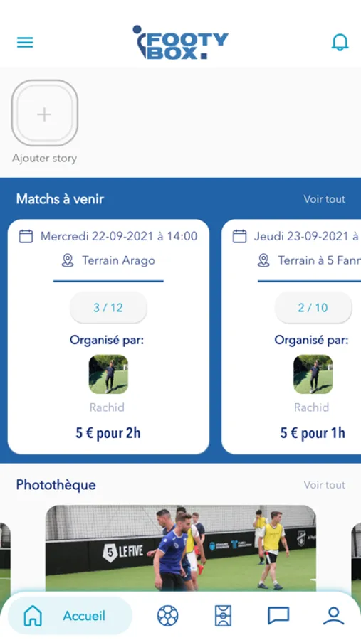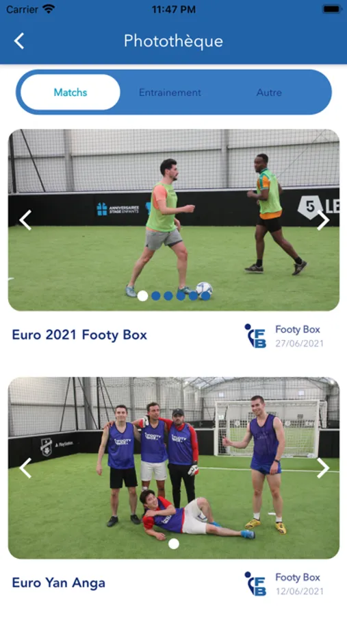 Avec Footy Box, jouer au foot n’a jamais été aussi simple! Que vous soyez seul ou à plusieurs, venez simplement avec votre plus beau sourire et nous nous occupons du reste. Inscrivez-vous via notre appli à l’un des nombreux matchs, entraînements ou tournois que nous organisons chaque semaine. Pour un tarif associatif, Footy Box fournit tout le matériel nécessaire, se charge de constituer les équipes et d’harmoniser les niveaux.