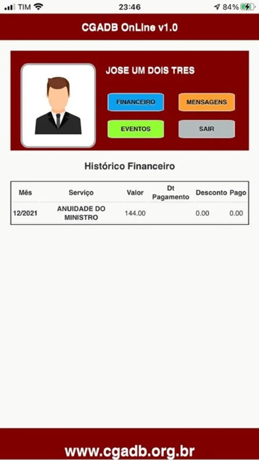 Financeiro - Aonde o ministro irá consultar suas solicitações financeiras (Anuidades, credenciais e inscrição de eventos), que serão feitas diretamente na CGADB;