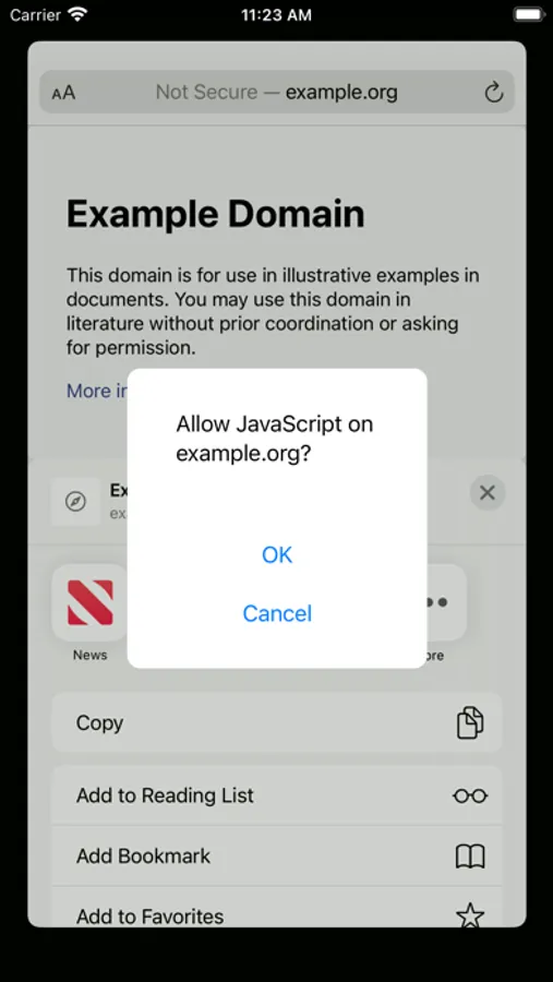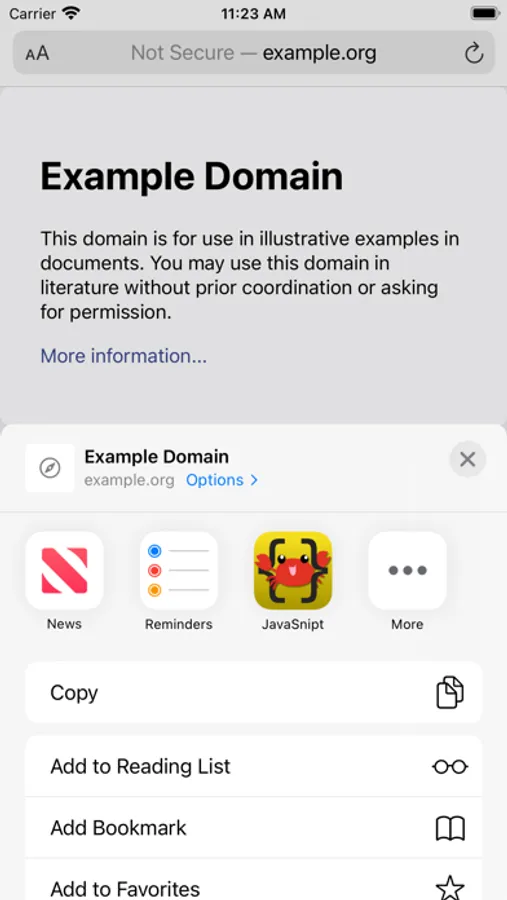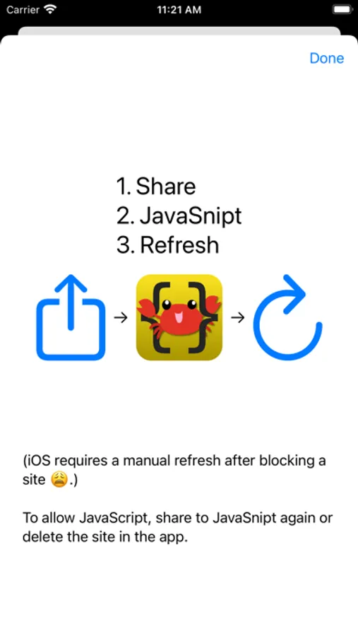 When you encounter a website with too much JavaScript, just tap share → JavaSnipt → refresh, and voilà! No more interactivity.