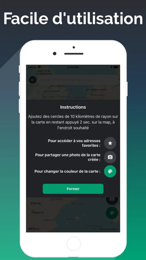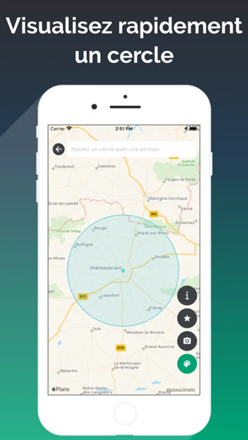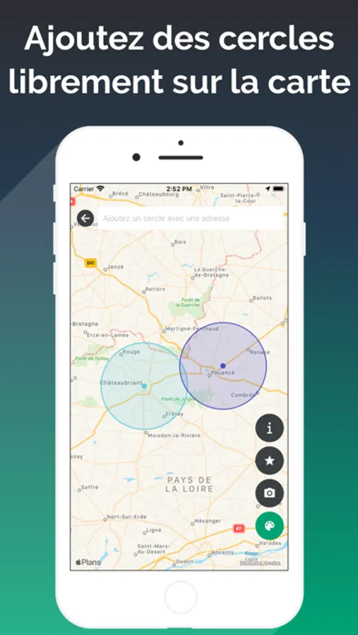 This application will allow you very easily and quickly to place circles of different radius to show you at a glance the distances. Allows you to calculate the distance from one point to another.