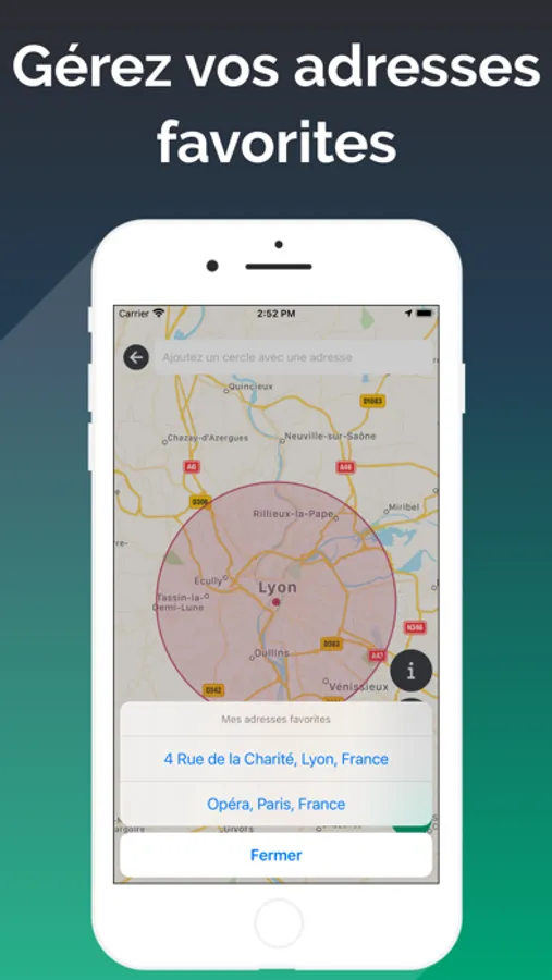 You will be able to quickly display a circle of distance around your GPS position if you wish, or simply add circles of different radius on the map to have the distances as the crow flies.
