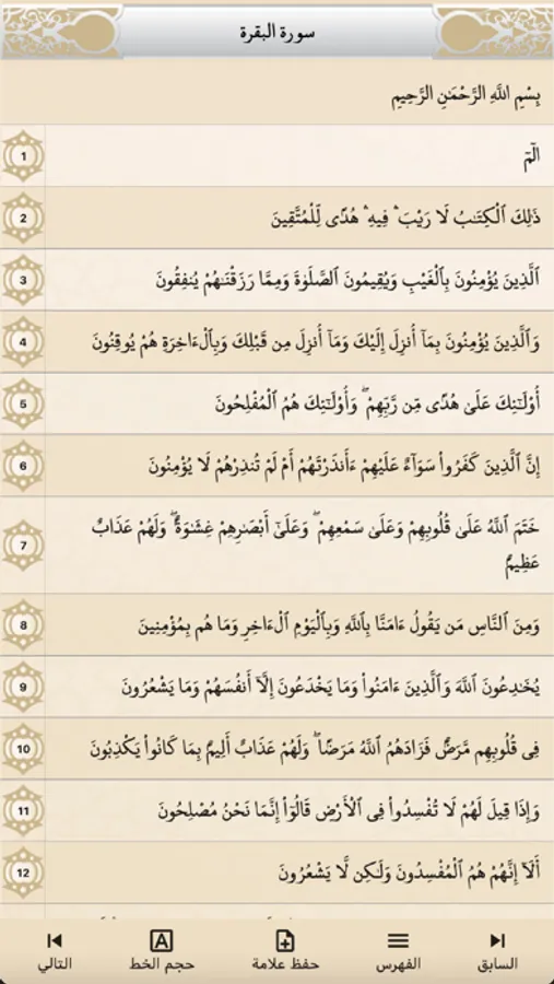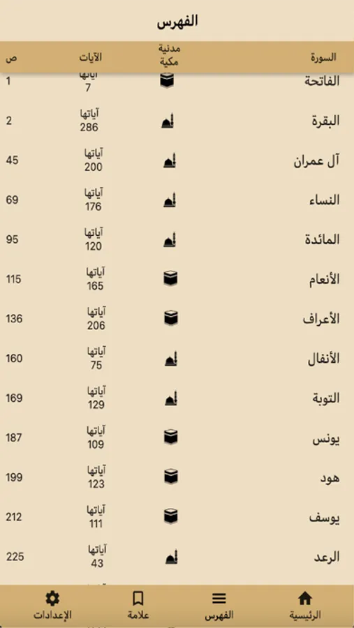 ٢- يمكن اضافة علامة لسورة معينة للعودة إليها لاحقا