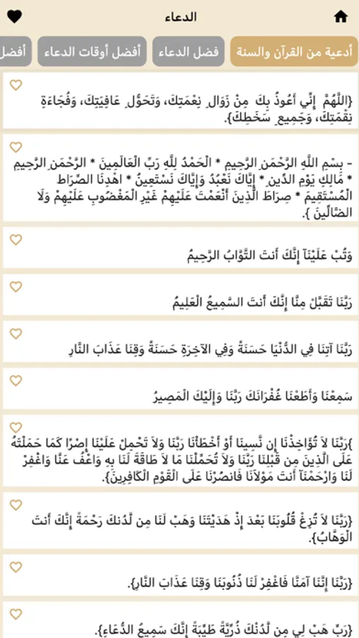 ٤- وجود قسم خاص بالأدعية الواردة من القرآن و السنة