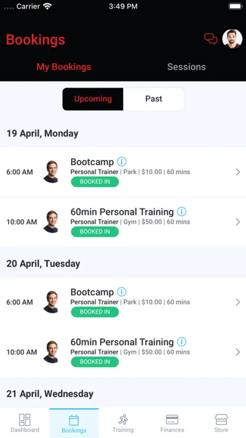 Manage & Book your Personal Training Sessions at Mosh Fitness APP.