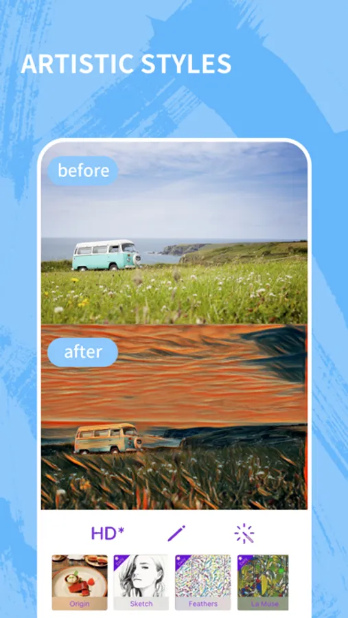 FreeStyle is a photo editor app that creates amazing picture filter and effects using Style Transfer Technology(also known as Deep Learning Technology). And it transforms your photo into masterpiece. Using these AI filters, it is easy to make your photo look as if Da Vinci, Picasso, Monet painted for you.