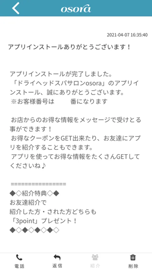 osoraのアプリをSNSを通じてお友達に紹介する事ができます。