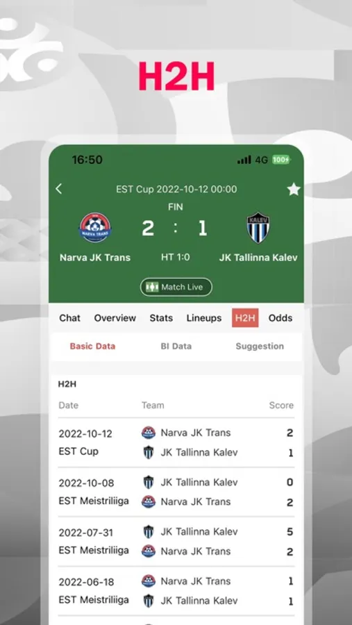 Historical confrontation: Provide users with data comparison of scores and index results through the scores and indexes of the past battles between the two sides;