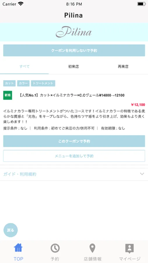 お得なクーポンが配信されます。ネット予約時にクーポン利用での予約も可能なので来店時もスムーズに施術頂けます。
