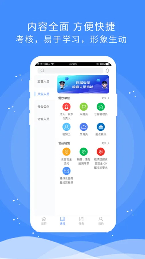 【产品介绍】“食安快线通用版”APP是原“食安快线”APP全新优化升级版,是由监管部门主要编审上线的食品安全知识专业培训平台。平台采用先进的线上“慕课”培训模式,为广大用户提供食品安全培训考核服务。 【特色服务】“食安快线通用版”APP针对食品从业人员各岗位需求,结合“实操培训”理念,创新“幕课”模式课程体系,为用户提供随时随地“按岗学习”、“按岗考核”、“自测抽查”等线上功能。升级版APP学完即考、考完即生成电子合格证明,让用户在较短时间内掌握必要的食品安全知识。 【服务人群】食品从业人员、食品安全检查人员、学生、社会公众。 【发展愿景】“食安快线通用版”旨在助力全国提升食品从业人员安全知识和专业素养,全面提高食品从业人员的食品安全法律风险意识和岗位操作能力,推进食品行业安全治理体系和治理能力全面升级。
