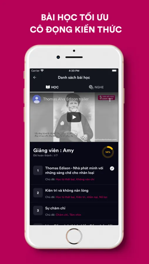 ỨNG DỤNG 1000 BÀI HỌC DANH NHÂN GIÚP NGƯỜI DÙNG: