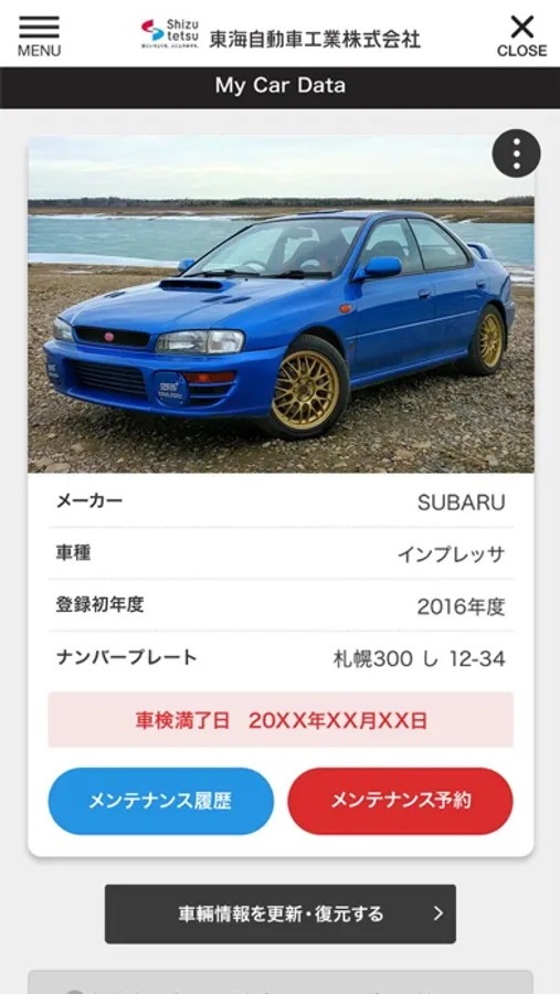 一度店舗へご来店いただきお車の登録がある場合、アプリに必要情報を入力していただくと、ご自身のお車の車検時期などがアプリ上でご確認いただけます!