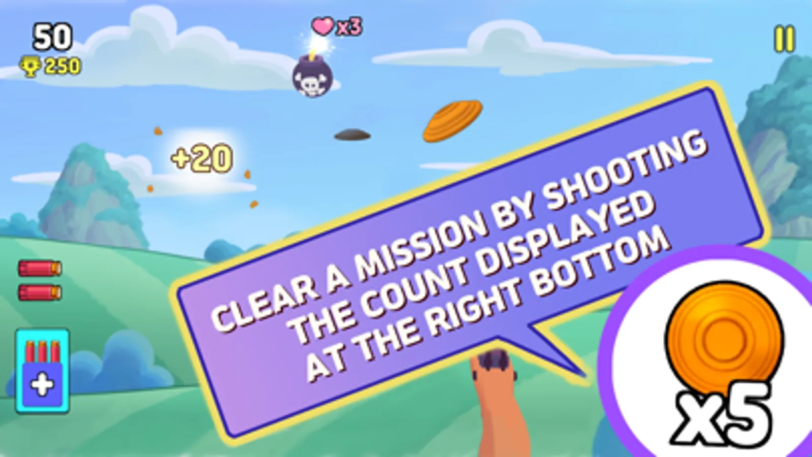Clear a mission by shooting the mission color displayed at the right bottom.