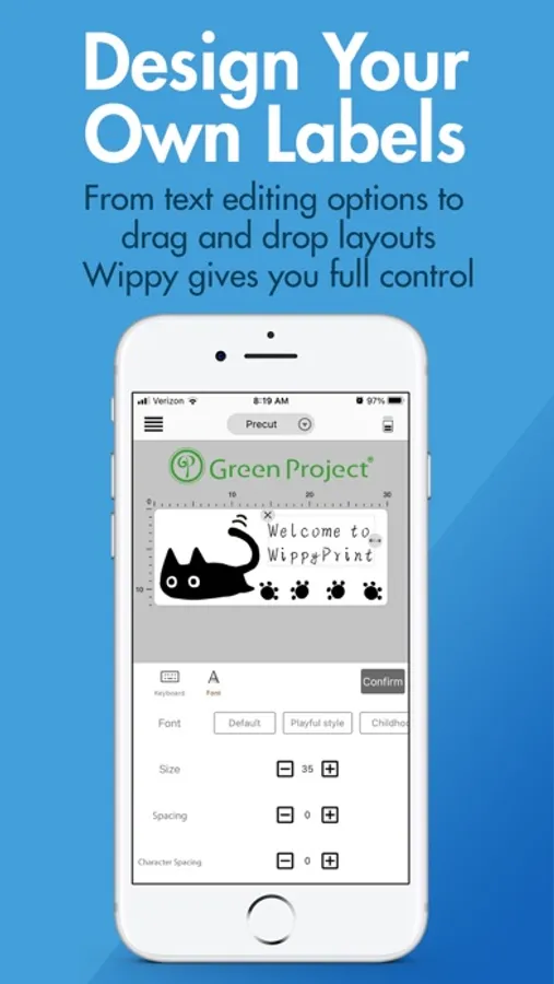 Experience convenience and organization with our Wippy portable label printer. Customize your labels with different fonts, a variety of borders, and 1000+ symbols that the app has to offer. Easily connect to our Wippy label printer via Bluetooth and our app will assist you in creating/editing your own custom labels! With WippyPrint's convenient, intuitive printing, you can produce unique labels anywhere and anytime with a touch of a button.
