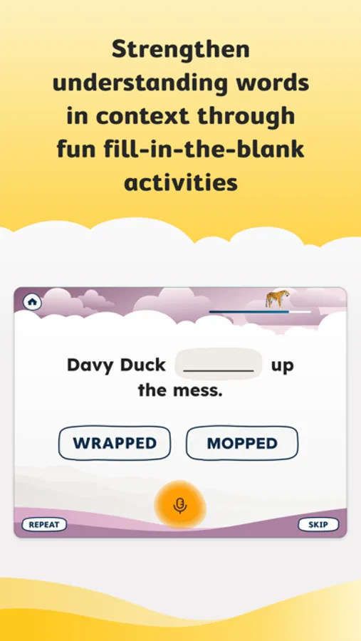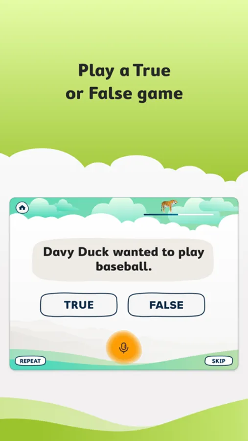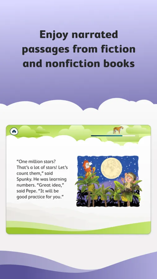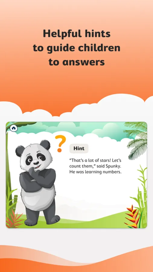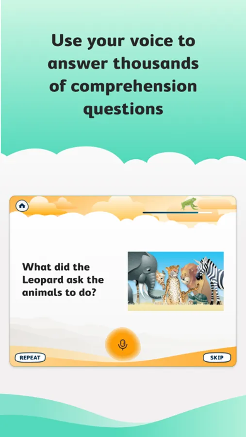 Parents or caregivers select fun animal avatars and a grade level while setting up the children’s profiles (up to 6 profiles per family). Bamboo Learning’s Panda welcomes children to the app and guides them through thousands of listening and reading comprehension activities. The Panda character offers praise and awards tokens for correct answers, gently nudges children to try again in case of incorrect answers, and suggests hints to help arrive at the correct answer. Engaging sound effects accompany praise, tokens, and hints. Children select books from a menu of grade-leveled titles; the app follows their progress and offers to resume the book where they left off or choose another book upon their return to the app.