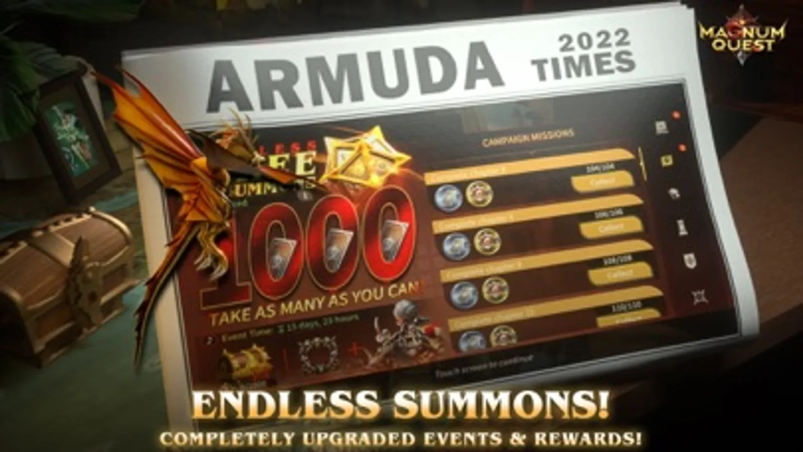 Do what you are good at, everyone has a role to play in Magnum Quest GVG&GVE fights. Find allies from around the globe and engage in competitive events and challenges to be on the Top of the Armuda continent. Beat your competitors and share lots of in-game resources. Join strategic competitions with endless heroes and equipment combinations: Carefully plan your hero formation. Grow strong together and gain the World Glory!