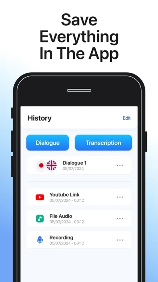 Organize Multilingual Voice Memos: Keep your thoughts and conversations organized with our multilingual voice memo feature. Record, save, and playback important notes or ideas in any language.