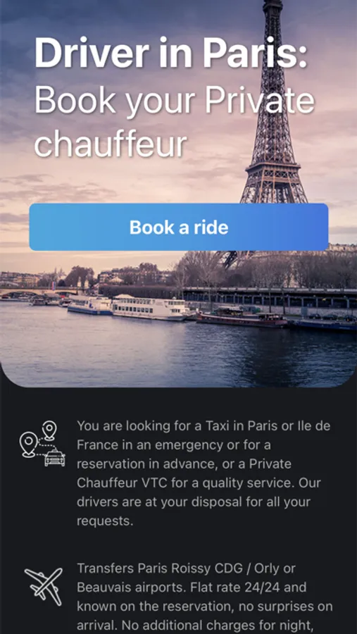 TOOK - Chauffeur VTC Paris provide the best solution for private transfers in Paris since 1995, we guarantee the highest safety and quality standards in each destination.